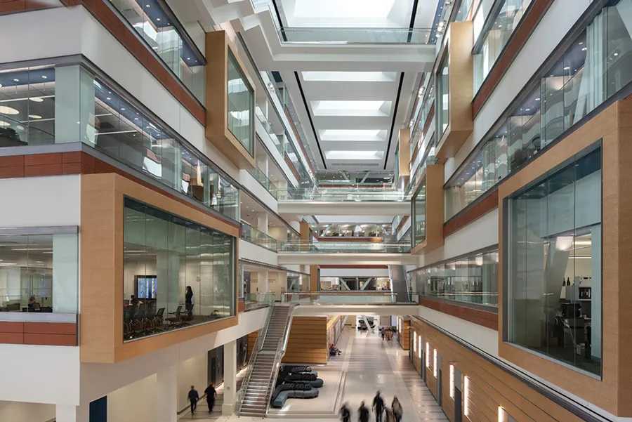 Spanning 58,345 square meters, the school features a striking sloped design with a high-performance terracotta panel rainscreen system—paying homage to Buffalo’s architectural heritage through its texture and aesthetic. Its design integrates architecture, interior design, landscape planning, urban design, and sustainable solutions.